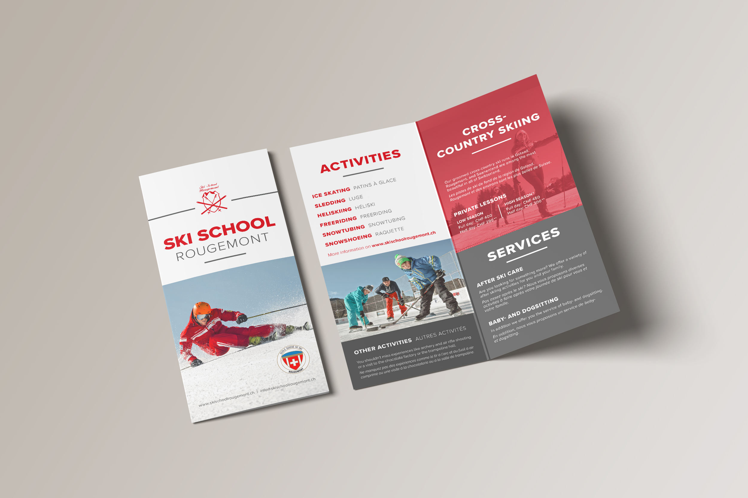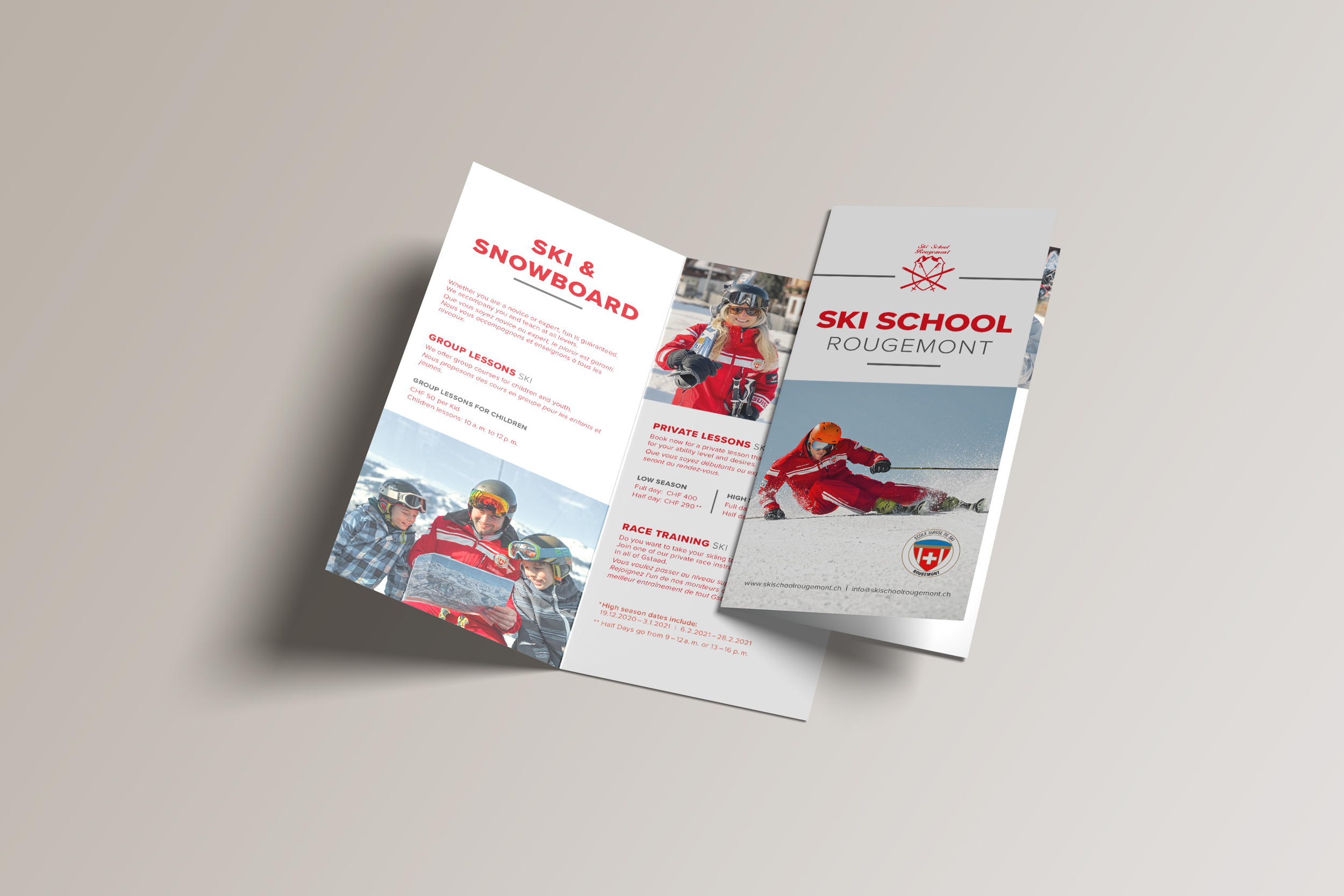 Der Flyer der Skischool Rougement durften wir neu überarbeiten und redesignen.
